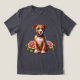 un ilustracion de un adorable cachorro de pitbull marrón, el epítome de la amabilidad, rodeado por un impresionante ramo de rosas.