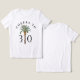 A bright Cheers to 30 tshirt for the woman turning thirty — think sunshine and palm trees. This customizable tropical birthday party gift coordinates with a matching invitation and other party supplies. Featuring a lush palm tree motif in the center bordered on each side with the birthday age that you can personalize with any age desired.