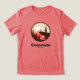 A hiker stands tall on a rocky outcrop, her silhouette sharp against a glowing sky of amber, rose, and soft violet—the golden hour light casting long, warm shadows. She’s rugged, wearing a weathered backpack and boots dusted with trail dirt, standing strong and still, taking in the vastness before her.