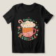 Navidades North Pole Social Club Reindeer Festive Holiday Tri-Blend Shirt presenta el texto "Corriendo en café y Navidades vitoreando" en una moderna tipografía de escritura roja y verde con una taza festiva de café, latas de dulces y gente de pan de jengibre. Perfecto para regalos de Navidades, fiestas de Navidades y celebraciones de feriados, cumpleaños y más. Creado por Evco Studio www.zazzle.com/store/evcostudio