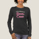 La divertida camisa vintage de manga larga de Navidad para mujeres de color rosa, blanco y negro dice "Todavía creo en Santa Caws" en el frente. En la parte trasera, una corona de estampado retro con un sombrero de Santa contra un fondo rosado angustiado. He dejado el texto completamente personalizable en esta camisa si prefieres un dicho diferente, pero también puedes dejarlo como está. ¡Feliz Crowmas! Foto y diseño de Amanda Renee, CtrlZ Digital Designs 2025