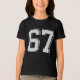 A cute kids t-shirt with a custom 67 number design, personalized for birthdays or school.