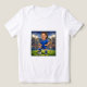 Turn yourself, a friend, or a teammate into a stadium legend with this custom photo soccer caricature t-shirt. Featuring a high-energy, vibrant illustration of a female soccer player standing tall under the bright stadium lights, this design is the ultimate "face-in-the-hole" template.