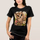 This adorable owl t-shirt features a cute baby owl with big expressive eyes in a close-up portrait surrounded by soft floral elements in a watercolor style.