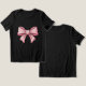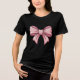 Make a bold yet feminine statement with this pink bow women's t-shirt. Set against a classic black background, the vibrant pink ribbon graphic creates a stunning contrast that fits perfectly with the coquette aesthetic and soft girl trends. This soft and comfortable cotton tee is a versatile addition to any wardrobe—pair it with jeans for a casual look or a skirt for a balletcore-inspired outfit. It also makes a chic and thoughtful gift for the fashion-forward girl in your life!