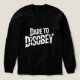 An electrifying graphic design featuring the phrase "DARE TO DISOBEY" in a bold, jagged font that screams rebellion and nonconformity. With its edgy, split-style lettering and high-contrast white-on-black palette, this design embodies a punk-rock attitude and fearless resistance