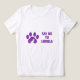 Digamos No al diseño de la pata L en morado en la parte frontal; PetAdvocare.com y la información del grupo FB en la parte posterior.
