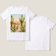 The image is a watercolor illustration of a desert landscape featuring large cacti and green shrubs.