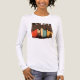El color es muy bonito al natural, como la foto. El tejido es suave y de buena calidad. Sin defectos en el tintado, ni hilos sueltos o descosidos. Bien la impresión. Los bordes de las letras y el dibujo son nítidos, y el color contrasta muy bien con el de la camiseta.