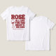 ¡Celebra con estilo nuestra camiseta Rosa Todo el Día Antes del Gran Día de la Novia! Perfecta para una fiesta de despedida de soltera con tema de viñedo, esta cómoda camiseta burgundy presenta un gráfico divertido de copa de vino y letras retro. Divertida, coqueta y perfecta para beber con estilo, ideal para las festividades de la tribu de la novia en el viñedo.