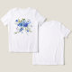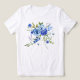 Este ilustracion acuático exhibe un hermoso ramo de flores azules con hojas verdes vibrantes.