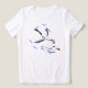 This women's white graphic t-shirt features an original illustration of two swans in flight -clean lines, open space, and subtle movement that reads calm. Inspired by migration, connection, and quiet momentum, the artwork blends fantasy and nature.