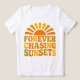 Capturar vibraciones de las horas doradas con "Forever Chasing Sunsets", un diseño perfecto para los espíritus libres, los amantes de la playa y todo aquel que viva para el resplandor de los cielos atareados.