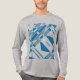 Se presenta un gráfico abstracto de arte contemporáneo con influencias tanto del arte suroeste como del estilo moderno de mediados del siglo XX. Este diseño geométrico consiste en una combinación de formas en azul medio y gris, con el patrón general inclinado en la diagonal. Un ambiente artístico y de moda para su vestidor informal y cotidiano, que también tiene un ambiente tropical y de playa o de surf. Fotografiado aquí en una camiseta de manga larga "gris atlético" de mezcla trópica, con otros estilos y colores disponibles para elegir. Como la camisa da una sensación artística y un estilo individualizado, esto contribuye a la sensación de estar "juntos", lo que puede ser especialmente estimulante para los que trabajan a distancia y/o pasan mucho tiempo en casa.