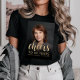 Esta camiseta de la fiesta de 50 años muestra la foto del invitado de honor con un texto de color dorado. La palabra "ovaciones" aparece en un elegante guión de caligrafía de color dorado, seguido por "a 50 años" y el nombre y cumpleaños del invitado de honor en sans serif font. Una pantalla oscura ayuda a hacer que el texto aparezca. ¡Una gran manera de celebrar a alguien que cumple cincuenta años!