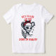 Snarky, funny alien giving the side eye and holding a hypodermic needle with medicine for your dose of reality on this t-shirt for sci-fi lovers, UFO conspirators and dark humor fans.