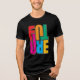 El color es muy bonito al natural, como la foto. El tejido es suave y de buena calidad. Sin defectos en el tintado, ni hilos sueltos o descosidos. Bien la impresión. Los bordes de las letras y el dibujo son nítidos, y el color contrasta muy bien con el de la camiseta.