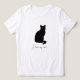 Gato negro con la camisa triple mezcla de ojos amarillos y texto "Amo a mi gato". El gato negro con los ojos amarillos se sienta y te mira. Objeto aislado animal doméstico mascota favorito. Camisas tribladas con ilustracion de animales personalizado plana.