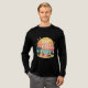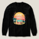 Una alegre escena de picnic en la playa con una tabla de surf, palmeras y un cielo con puesta de sol, que difunde "¡Buenas vibraciones en un momento!" Perfecto para días relajados, estados de ánimo de verano y momentos despreocupados. ¡Deja que las buenas vibraciones roden dondequiera que vayas!