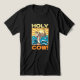 Una vaca divertida en una camiseta con un juego de palabras visual. Utilice "Personalice esta plantilla" para modificar el texto de "HOLY COW!" y crear un elemento único y personalizado. Juego de palabras con una vaca dramática en una bata, sosteniendo un sinvergüenza de pastor y un pergamino religioso, apareciendo olas con un arrebato dorado detrás.