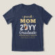 Muestra tu alegría por el graduado con una camiseta de graduación femenina "Orgullosa Mamá" con foto personalizada y estilo. La imagen y el texto de esta plantilla son fáciles de personalizar, y todo el texto, los colores y las fuentes se pueden cambiar con la herramienta de diseño de Zazzle. (CONSEJO DE UBICACIÓN DE IMAGEN: Una forma fácil de posicionar una foto exactamente como la desea es recortarla antes de subirla al sitio web de Zazzle.) El diseño en azul marino y dorado incluye la foto del graduado, nombre, año de graduación, escuela y espacio adicional opcional para una cita inspiradora, dicho motivacional u otro texto. También presenta tipografía moderna elegante y caligrafía estilizada. Tenga en cuenta que el dorado es un color de impresión, no lámina metálica. Esta camiseta es una idea genial para un outfit para una ceremonia