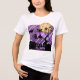 Criaturas negras espeluznantes de Halloween con fondo de lavanda y luna grande