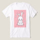 Este lindo conejo con un delicado fondo rosado se ve tan encantador y gracioso que no puede evitar deleitar el ojo y hacerte sonreír. Este diseño, que refleja la alegría lúdica de la primavera y la felicidad, es perfecto para los niños, los amantes del conejo y todo aquel que aprecie el arte encantador. Será una decoración maravillosa para las camisetas, creando un ambiente fabuloso por todas partes.