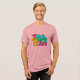 El color es muy bonito al natural, como la foto. El tejido es suave y de buena calidad. Sin defectos en el tintado, ni hilos sueltos o descosidos. Bien la impresión. Los bordes de las letras y el dibujo son nítidos, y el color contrasta muy bien con el de la camiseta.