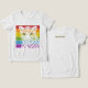 El color es muy bonito al natural, como la foto. El tejido es suave y de buena calidad. Sin defectos en el tintado, ni hilos sueltos o descosidos. Bien la impresión. Los bordes de las letras y el dibujo son nítidos, y el color contrasta muy bien con el de la camiseta.