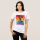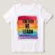 El diseño de la camiseta incluye la frase "Juntos aprendemos", que se muestra de forma destacada en tipografía audaz y multicolor. Las palabras se enmarcan en un contexto vibrante y abstracto que sugiere interconectividad y crecimiento. El diseño general transmite una sensación de unidad, colaboración y el poder del aprendizaje en conjunto.