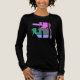 Una pequeña versión de un diseño de arte contemporáneo de formas audaces y geométricas en tonos acuarelas de rosa, verde oscuro y lavanda, inspirado en el estilo del arte tribal y, en segundo lugar, en mosaicos y arte abstracto moderno. Aquí se muestra una camiseta Tri-Blend de manga larga "negra sólida", con una variedad de estilos de camisetas y colores para elegir. Este "arte de llevar" en general es audaz y artístico, una adición de moda para el desgaste informal y cotidiano (para actividades que van desde el trabajo/escuela a deportes a recados relajantes/socializantes/corridos por la ciudad). Especialmente para aquellos que trabajan remotamente y/o pasan mucho tiempo en casa, la camisa contribuye a la sensación de estar "vestida" y "confeccionada", con un estilo personalizado.