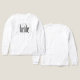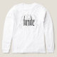La novia llevaba blanco clásico - con una muy poco clásica letra a mano con estilo gótico. La letra personalizada tiene un borde malvado, pero se suaviza por los florituras redondeadas femeninas que forman el corazón en el fondo. La camiseta hace que la cena de ensayo sea aún más divertida y memorable. El ambiente perfecto y ligero para prepararte para la ceremonia cuando probablemente estarás usando algo mucho más elegante. Pero para la cena, no tienes que pensar demasiado en qué ponerte, después de todo, hay mucho que considerar, ¿no es así? O quizás la uses debajo de tu chaqueta de cuero en la ceremonia en el juzgado, o proclames orgullosamente tu nuevo yo en tu luna de miel - a la gente le encantaría saber por qué están tan felices todo el tiempo. Hay tantas formas maravillosas de usar esta imagen. Una almohada para la silla de la novia, su taza, la tarjeta de felicitación como tarjeta de lugar, el cuaderno para guardar recuerdos, el bolso para guardar objetos queridos. Esperamos que alguna idea sea perfecta para tu boda, o el regalo perfecto de ti a la novia en la fiesta de despedida de soltera. Hemos creado un diseño de 'Novio' para combinar, solo busca en nuestra tienda, ya que hay algunas