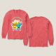 El color es muy bonito al natural, como la foto. El tejido es suave y de buena calidad. Sin defectos en el tintado, ni hilos sueltos o descosidos. Bien la impresión. Los bordes de las letras y el dibujo son nítidos, y el color contrasta muy bien con el de la camiseta.