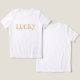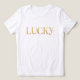 Celebrate St. Patrick's Day in style with this fun graphic tee. Modern text says "Lucky" and is filled with a gold leaf pattern. Bring a little luck and add to the fun with this holiday design.