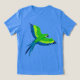 Tee en un ilustracion de un macaw/loro verde esmeralda y azul cobalto en vuelo
