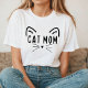 Este diseño de camisetas de "Cat Mom" presenta una cara lúdica y minimalista con whiskys, orejas y una diminuta nariz cardíaca, que captura un ambiente divertido y amoroso para los amantes de los gatos. El texto negro audaz y los gráficos simples destacan bellamente en la camisa blanca. Esta camiseta es un regalo perfecto y reflexivo para cualquier madre amante del gato.