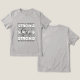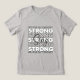 La camiseta es una pieza cómoda e informal hecha con tela suave y respirable. Presenta un diseño sencillo pero impactante con la frase motivacional "Mantente fuerte, crea en ti mismo" que se muestra de forma destacada en el frente. El texto está impreso en negrita, de fácil lectura, lo que lo convierte en una pieza destacada que inspira confianza y positividad.