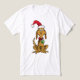 This adorable illustration features Max the Dog sitting patiently, fully embodying the holiday spirit—even if he looks slightly confused by it all! He is dressed in a floppy red Santa hat and a chunky red collar, which is charmingly adorned with a green Christmas ornament. Max's classic, expressive eyes and loyal posture make this image the perfect, heartwarming graphic for anyone who loves the true hero of the Grinch story!