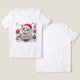 Diseño de camisetas para Navidades festivos con un lindo gato en un sombrero de Santa, rodeado de adornos navideños, copos de nieve y luces, con el lúdico texto 'Navidades Meowy