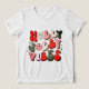 Los Navidades retro Holly Jolly Vibes Trendy Holidays Girly Girl's T-Shirts presenta el texto "Holly Jolly Vibes" en un guión retro en rojo, verde y rosa acentuado con estrellas y caras adorables y felices. Diseñado por ©Evco Holidays www.zazzle.com/store/evcoholidays