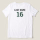 Camiseta de personalizado Front and Back Football T-Shirt - mostrada en White Design incluye el guión "Fútbol" con texto que se puede personalizar para el nombre del equipo, el apellido del jugador y el número de camiseta. Se pueden personalizar los colores verde oscuro, marrón de cuero y gris carbón vegetal.