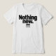 Nothing New delivers dry, understated humor through clean typography and simple layout. A wearable design for fans of subtle sarcasm.