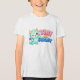 Adorable dragón esponjoso turquesa con mejillas sonrosadas y letras rosadas juguetonas, ideal para ropa y conjuntos alegres y caprichosos.