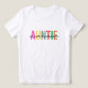 ¡Muestra tu divertido y colorido estilo de tía con esta camiseta personalizada! Con letras de arcoíris audaces que deletrean "AUNTIE" y un sobrepuesto de nombre personalizado, este diseño es perfecto para las orgullosas tías que aman destacar. Genial para el Día de la Madre, invitaciones para bebés, o simplemente muestra amor a tus sobrinas y sobrinos. Personalizar el nombre para hacerlo verdaderamente suyo!