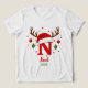 Create a one of a kind holiday keepsake with this festive personalized monogram. This design features the letter 'N' topped with a cute Santa hat and reindeer antlers, ready for your custom text. Click 'Personalize' to easily add a name and the year. Perfect for matching family shirts, custom stocking tags, or a special Christmas gift.