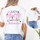 The back of the shirt makes a bold statement with the phrase "Just A Girl Who Loves Badminton" written in a vibrant pink font, surrounded by matching celestial and heart-shaped accents. This feminine sports graphic is an ideal gift for badminton girls, students, or coaches who want to showcase their passion for the game. Whether you’re heading to practice, a school tournament, or just hanging out with teammates, this custom badminton shirt combines athletic spirit with a fun, trendy design.
