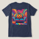 Psicodélico Jack O Lantern Sofa T-Shirt Esto es una psicodélica camiseta Jack O Lantern Sofa. El arte digital cuenta con un bonito jack o sofá de linterna. El gato de una linterna parece estar sentado en el sofá, pero una parte del sofá. La imagen también tiene arcos arcoíris, dos calabazas y nubes rosa bonito. La camiseta es una nueva camiseta azul marino de tres colores.