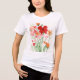 Red and pink wildflowers and green stems watercolor on women's T-Shirt.