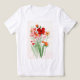 Red and pink wildflowers and green stems watercolor on women's T-Shirt.
