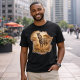 Textured, blended edges ensure the artwork integrates naturally into the fabric, avoiding harsh borders and giving the design a lived-in, garment-ready feel. The gold-sand typography is designed to remain bold and visible on dark tees without overpowering the artwork.